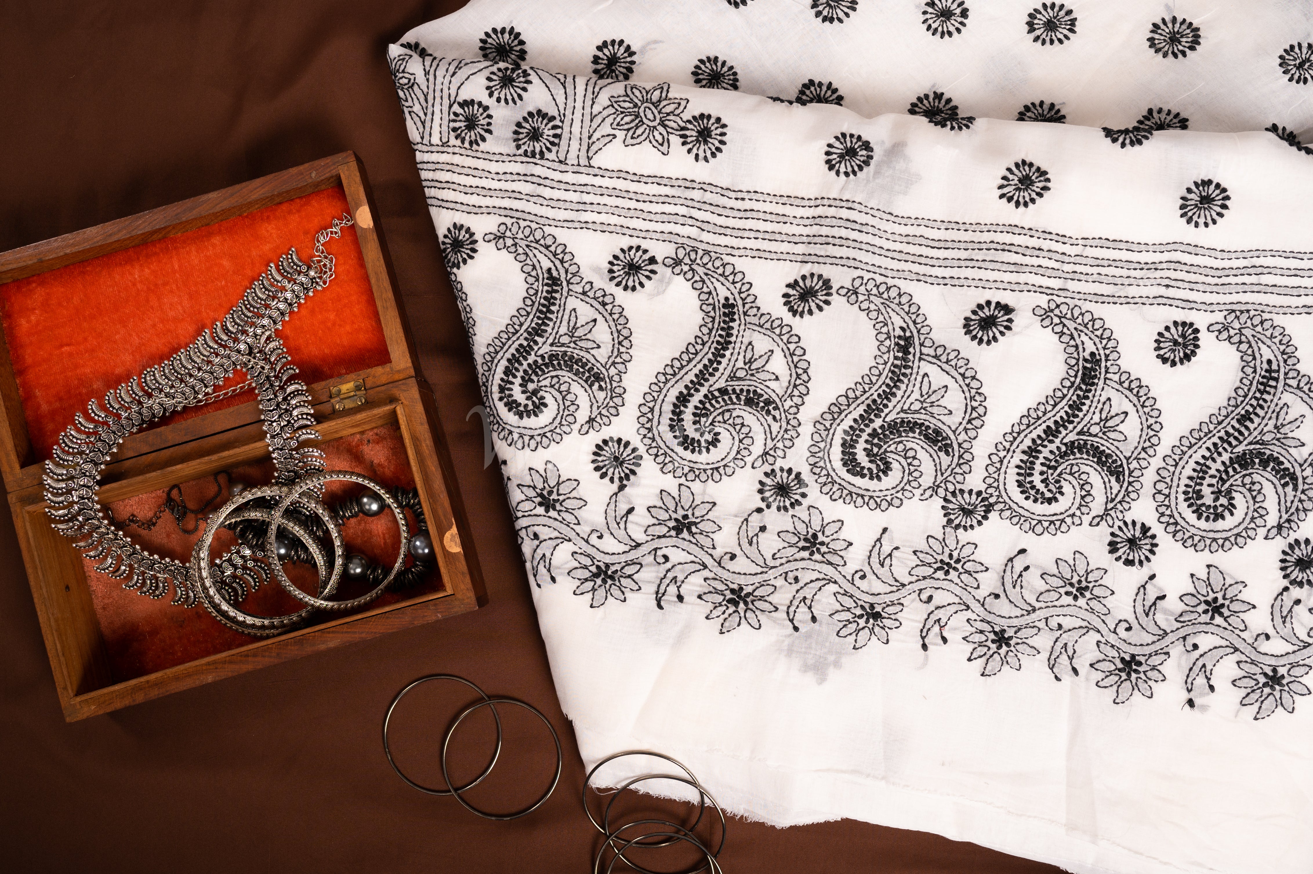 Chikankari (embroidery) is one of Lucknows most ancient and well-known art forms. The Lakhnavi Chikankari saree has got international fame because of its intricately detailed and neat hand-done embroidery. This must-have piece of clothing is one of the most graceful and elegant attire.