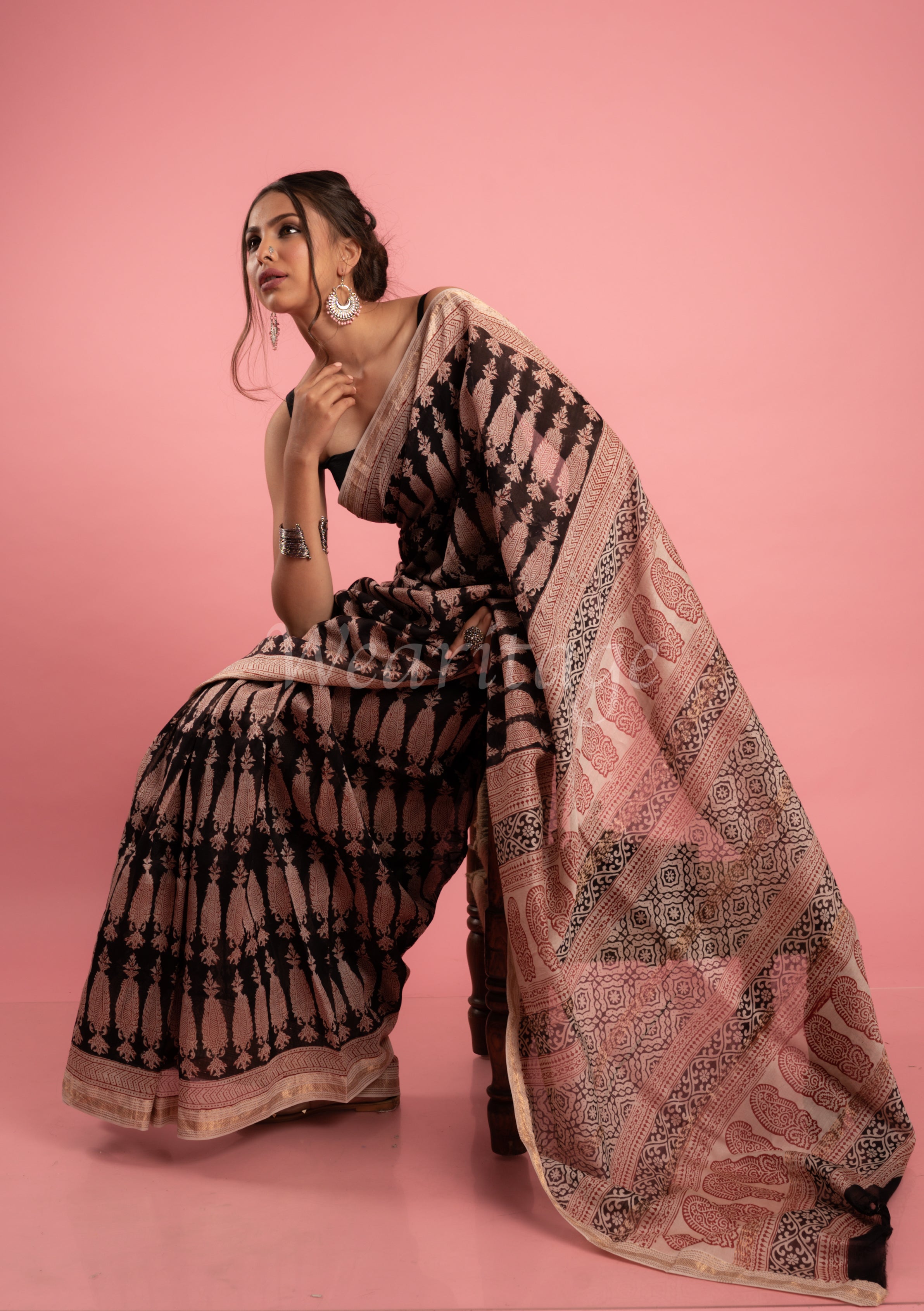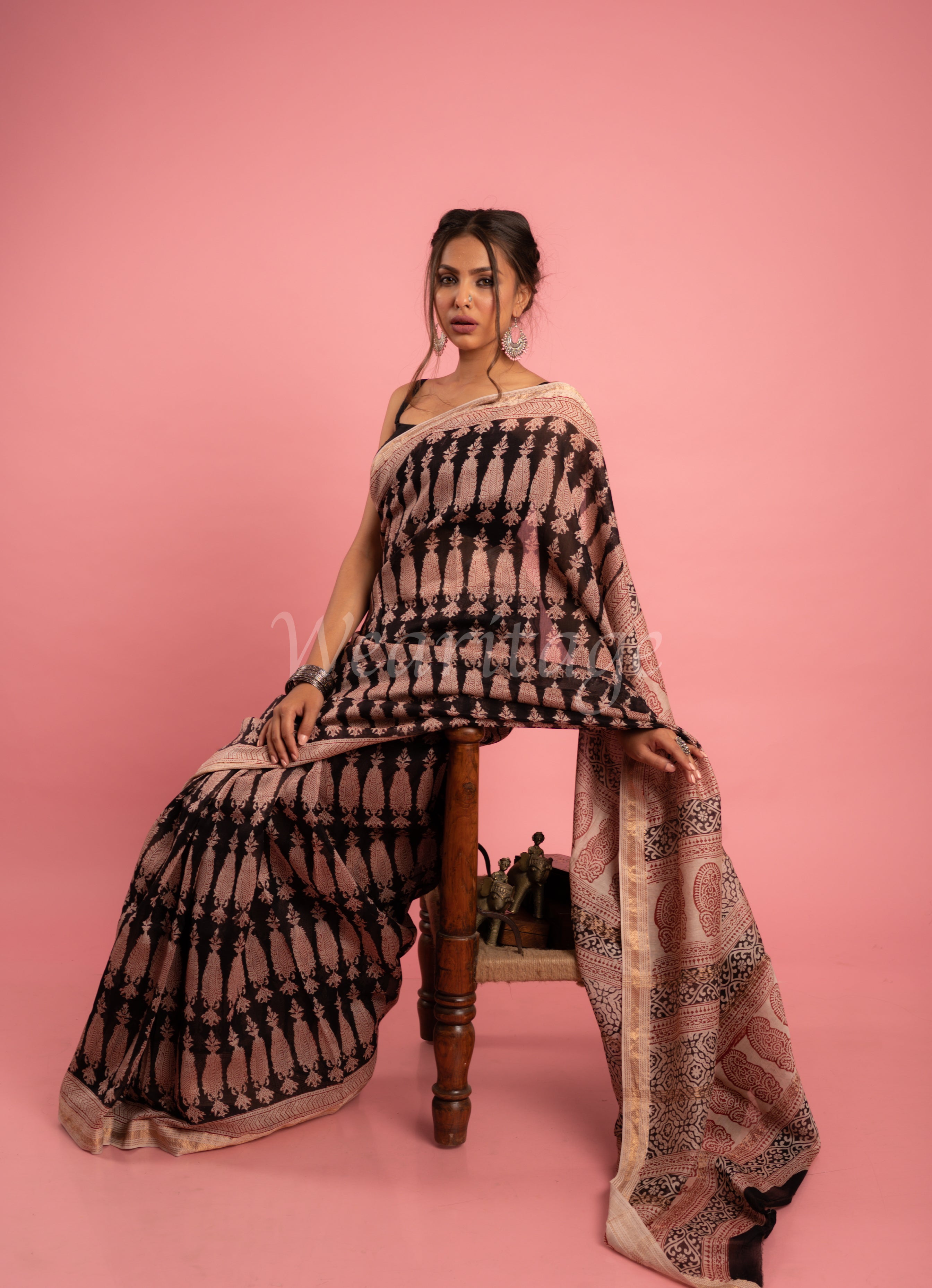 Maheshwari sarees are mostly woven in cotton and silk, making them everyoneÕs favorite. These sarees are characterized by a narrow coloured border embellished with zari, and small checks, narrow stripes, or solid color in the body. They have an interesting design as their borders are reversible. It is because of this that they are also known as bugdi (which can be worn on both sides.) These sarees are gorgeous, lightweight and bright Ð perfect for every occasion.