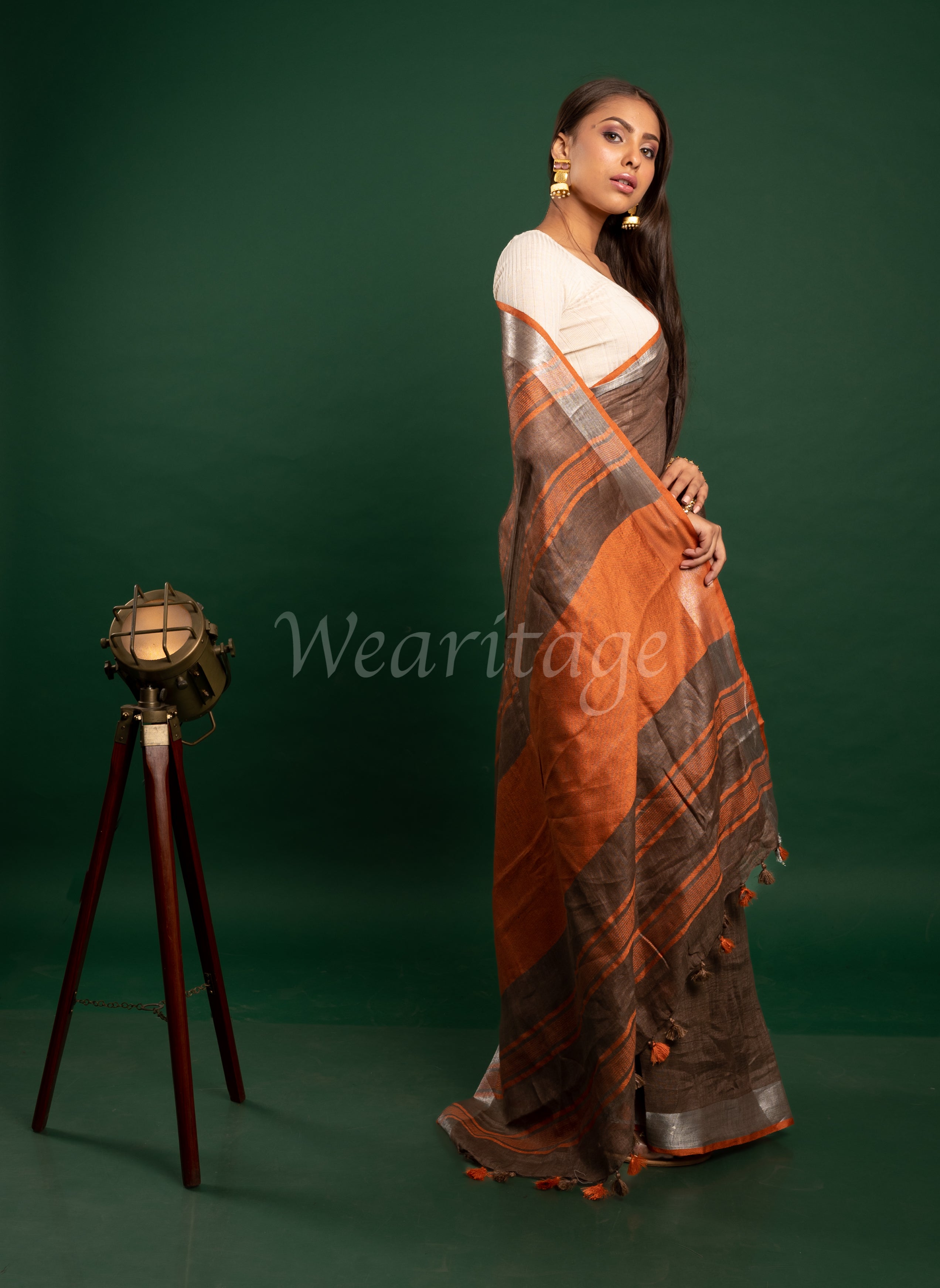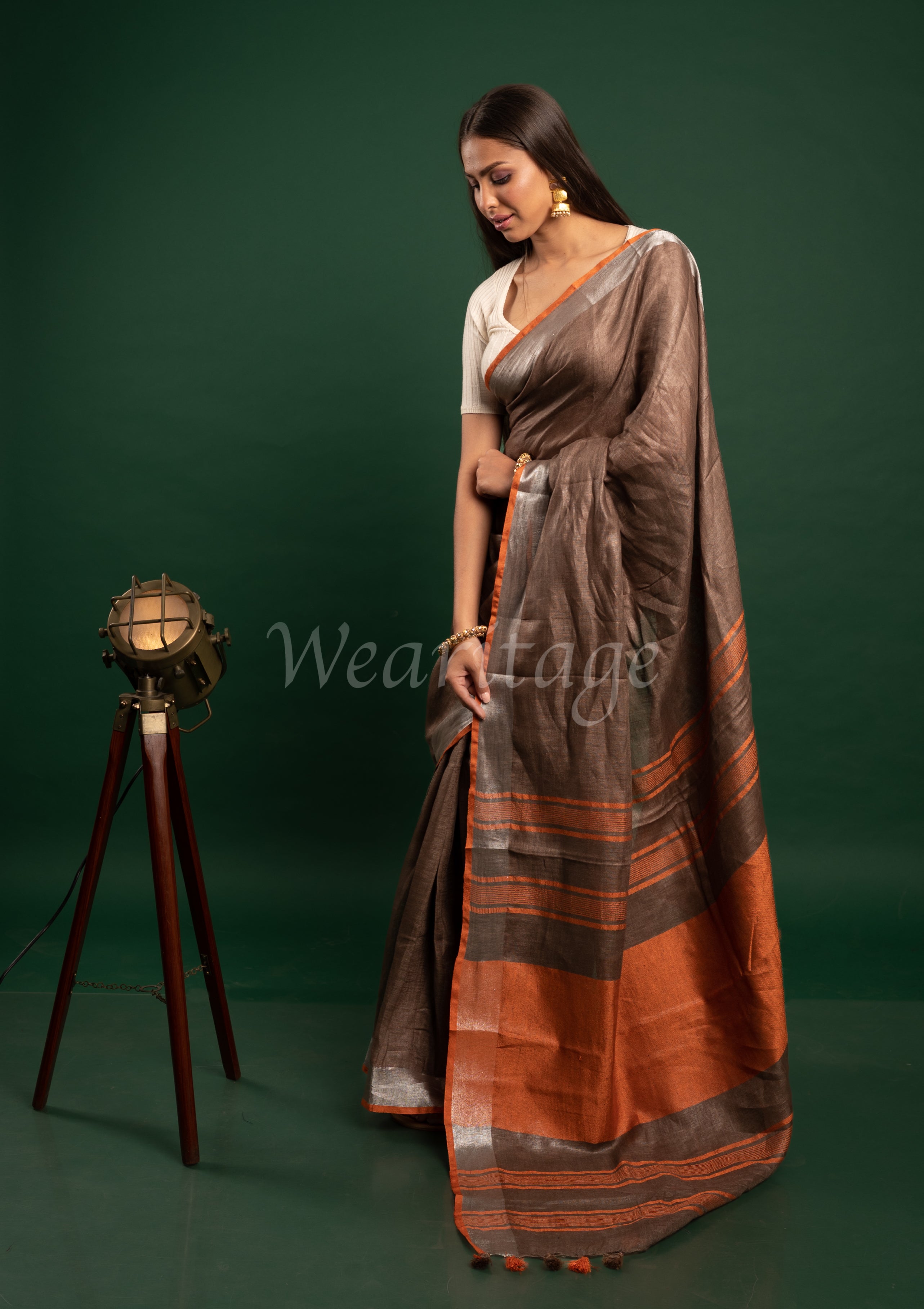 This light fabric is very breathable when worn. It suits the Indian climate perfectly and can be worn all year round. When mixed with other textiles like cotton, it becomes very soft and delicate. Linen sarees are easy to wear, vibrant and very common all over India.