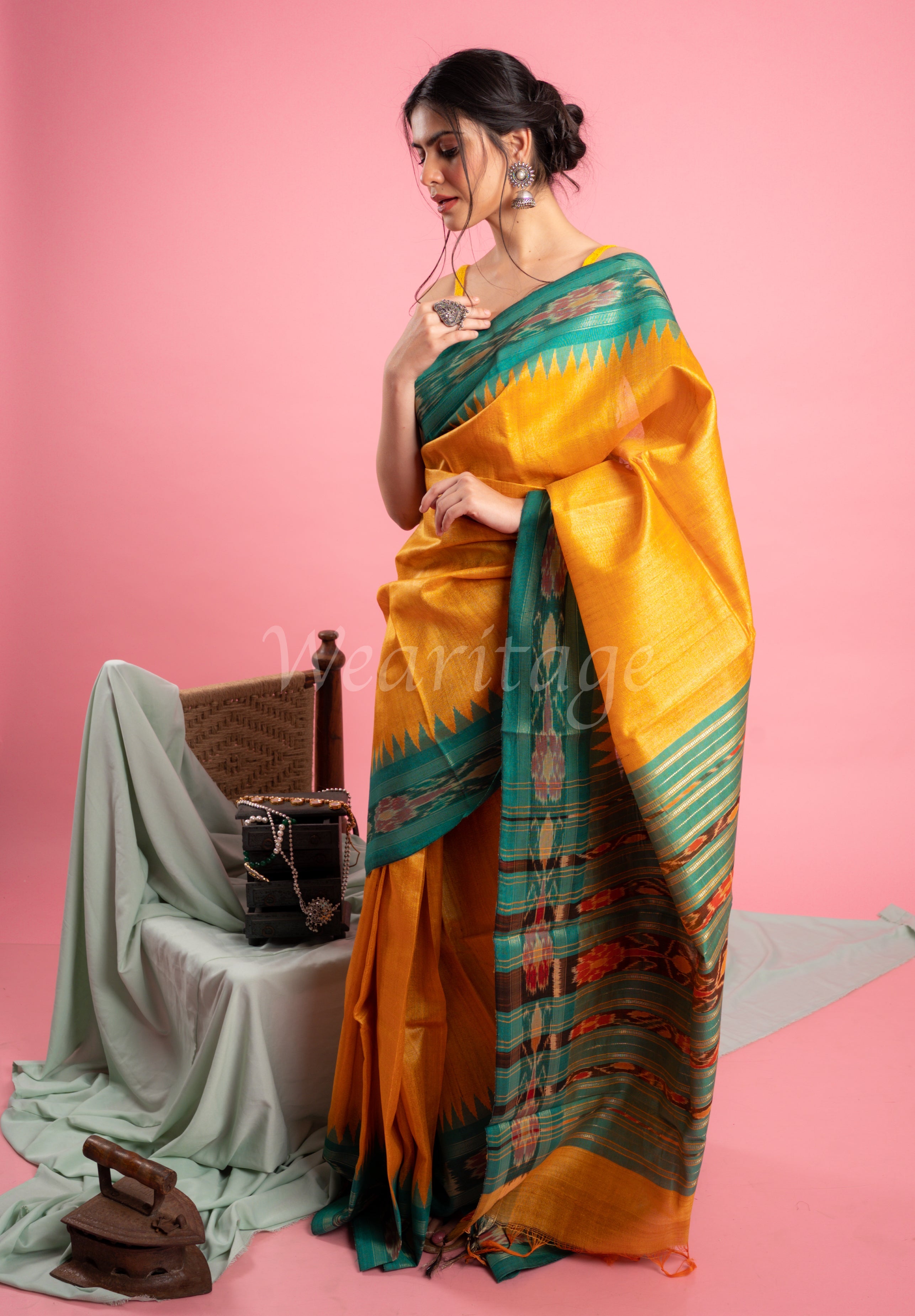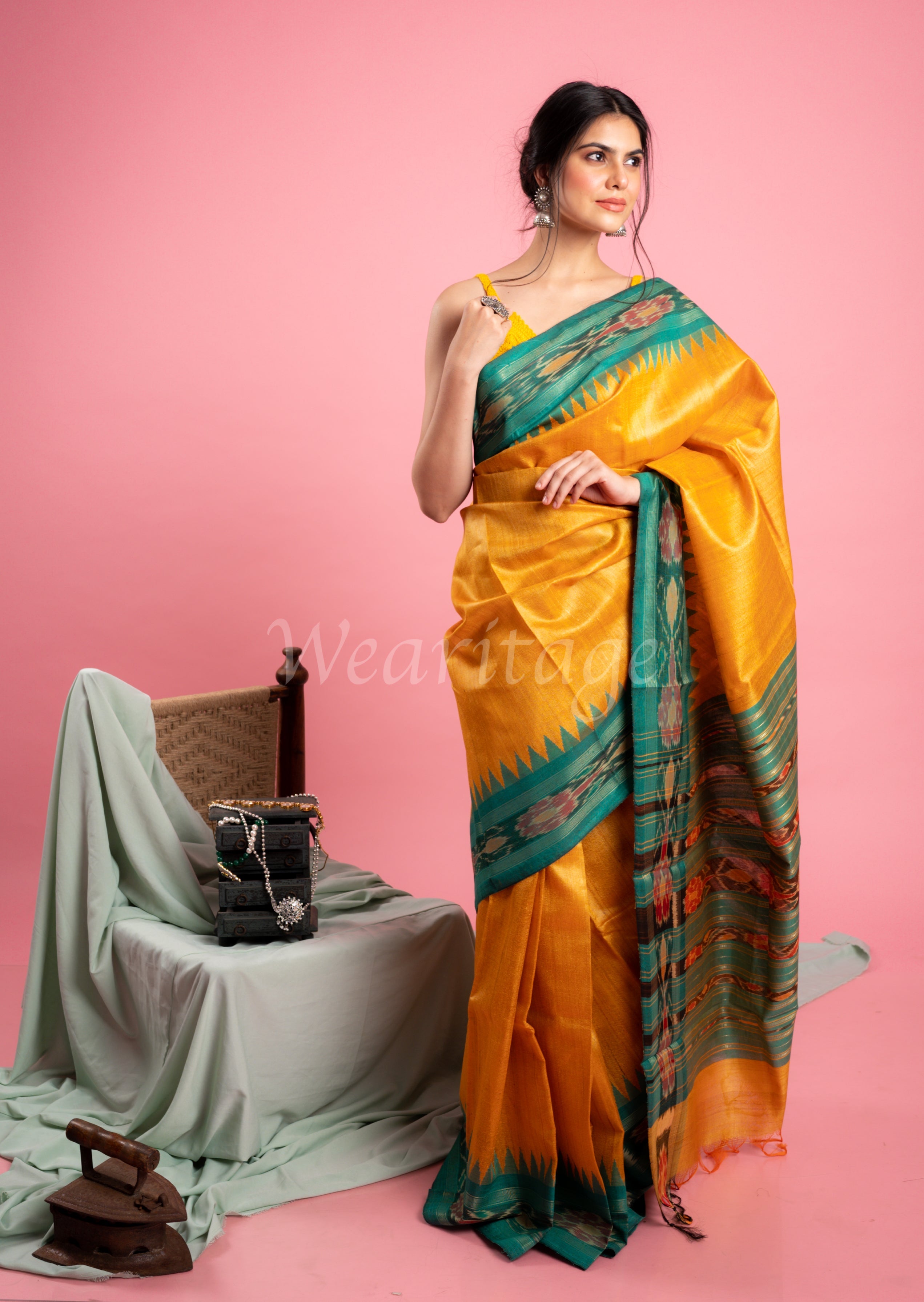 Amongst all the types of silk known, tussar distinguishes itself with its unique charm. Its rich texture and natural gold color make it similar to a natural treasure which is passed on as an inheritance to the women of the household. Tussar silk is considered more textured than cultivated Bombyx or mulberry silk, but it has shorter fibers, which makes it less durable. It has a dull, gold sheen. As most of the cocoons are collected from the forest, it is considered by many as a forest product.