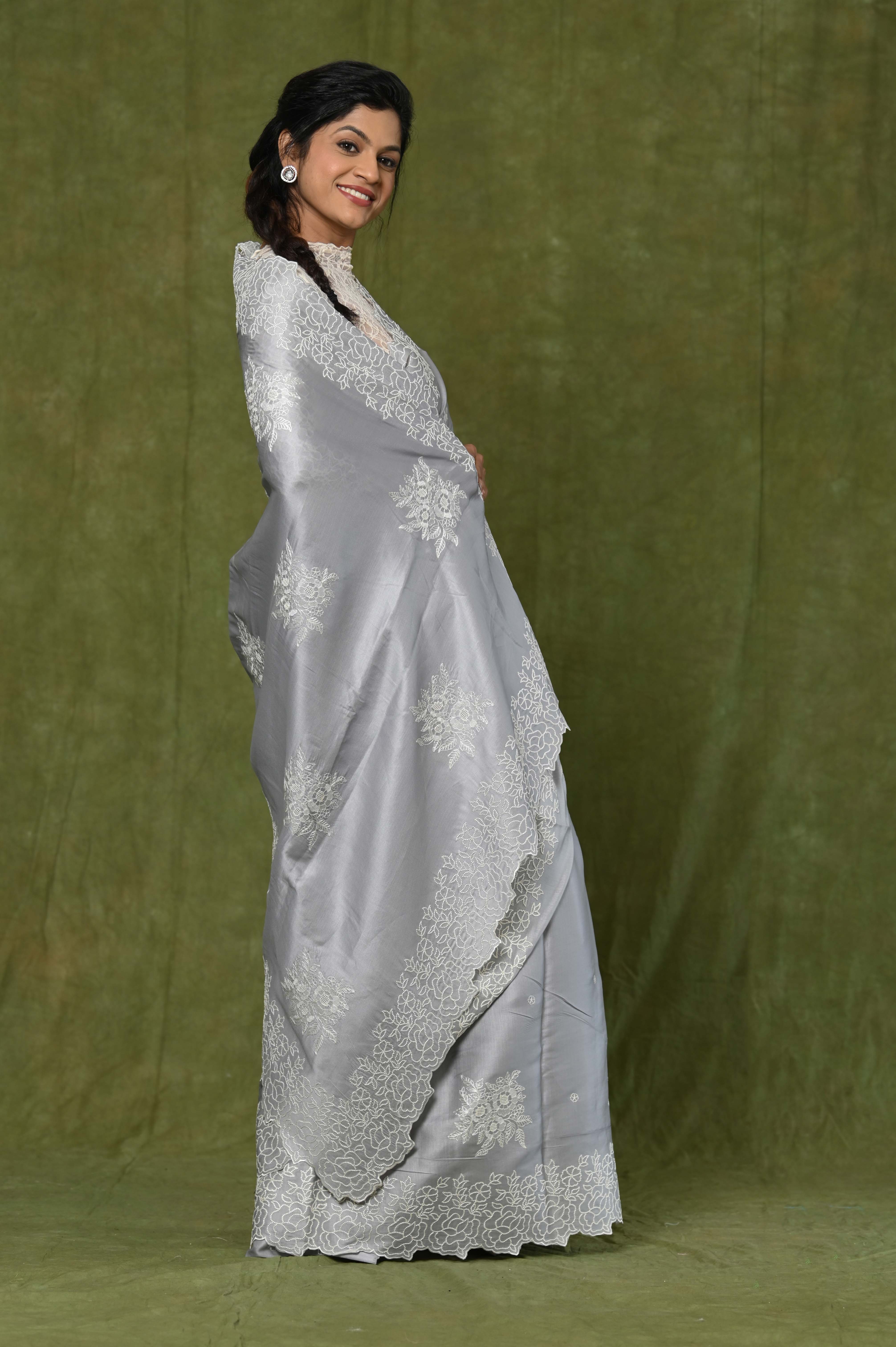 A semi Tussar cutwork saree is an elegant and sophisticated choice for traditional Indian attire. Tussar silk, also known as "Kosa silk," is a fine and textured silk fabric produced from the cocoons of the Tasar silkworm. Semi Tussar silk is a slightly less refined version of Tussar silk, offering a more affordable option while retaining some of the charm and sheen. Cutwork embroidery involves intricate patterns and designs created by cutting sections of fabric and embellishing them