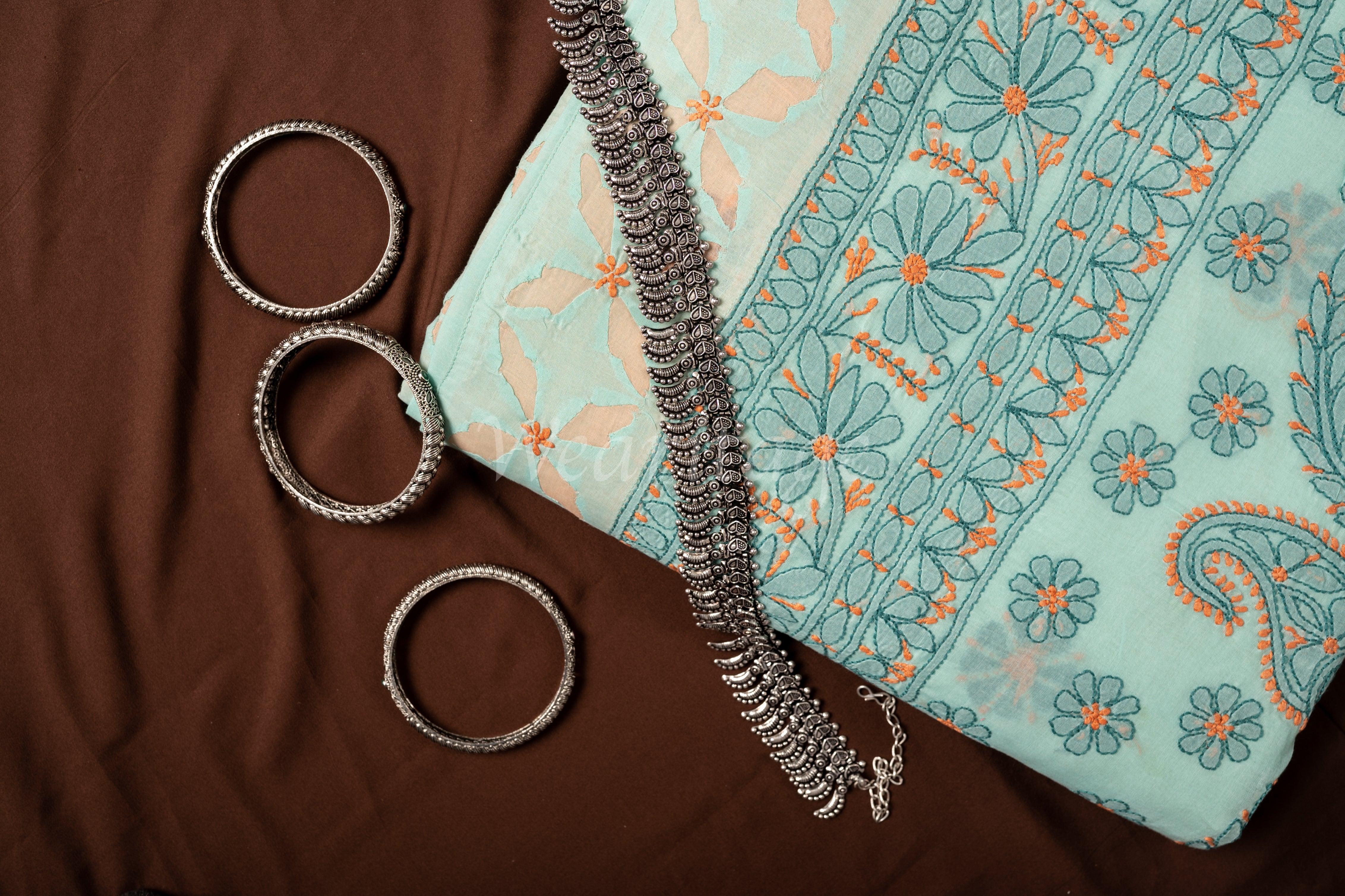 Chikankari (embroidery) is one of Lucknow's most ancient and well-known art forms. The Lakhnavi Chikankari saree has got international fame because of its intricately detailed and neat hand-done embroidery. This must-have piece of clothing is one of the most graceful and elegant attire.