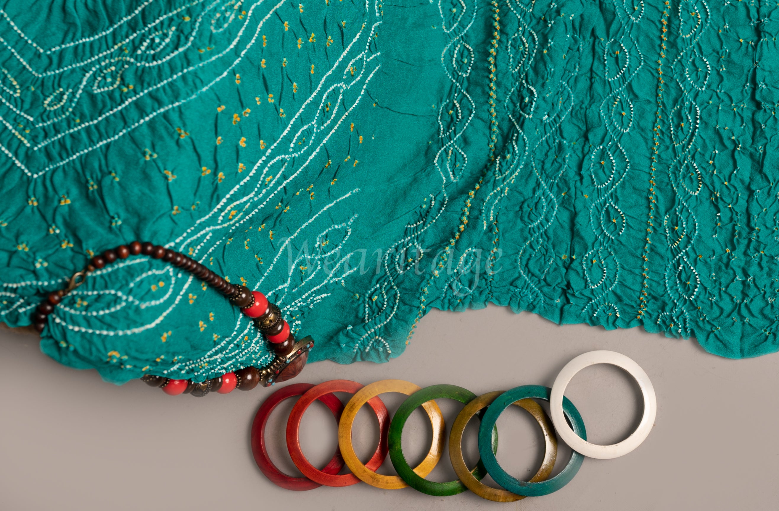 Bandhani/Bandhej sarees are made by skilled artisans. This tie and dye technique involves a long process where the small portion of fabric is gathered and tied in several small knots. These are then dyed in different colours. When the knots are taken off, it gives an amazing figurative and dotted pattern designs.