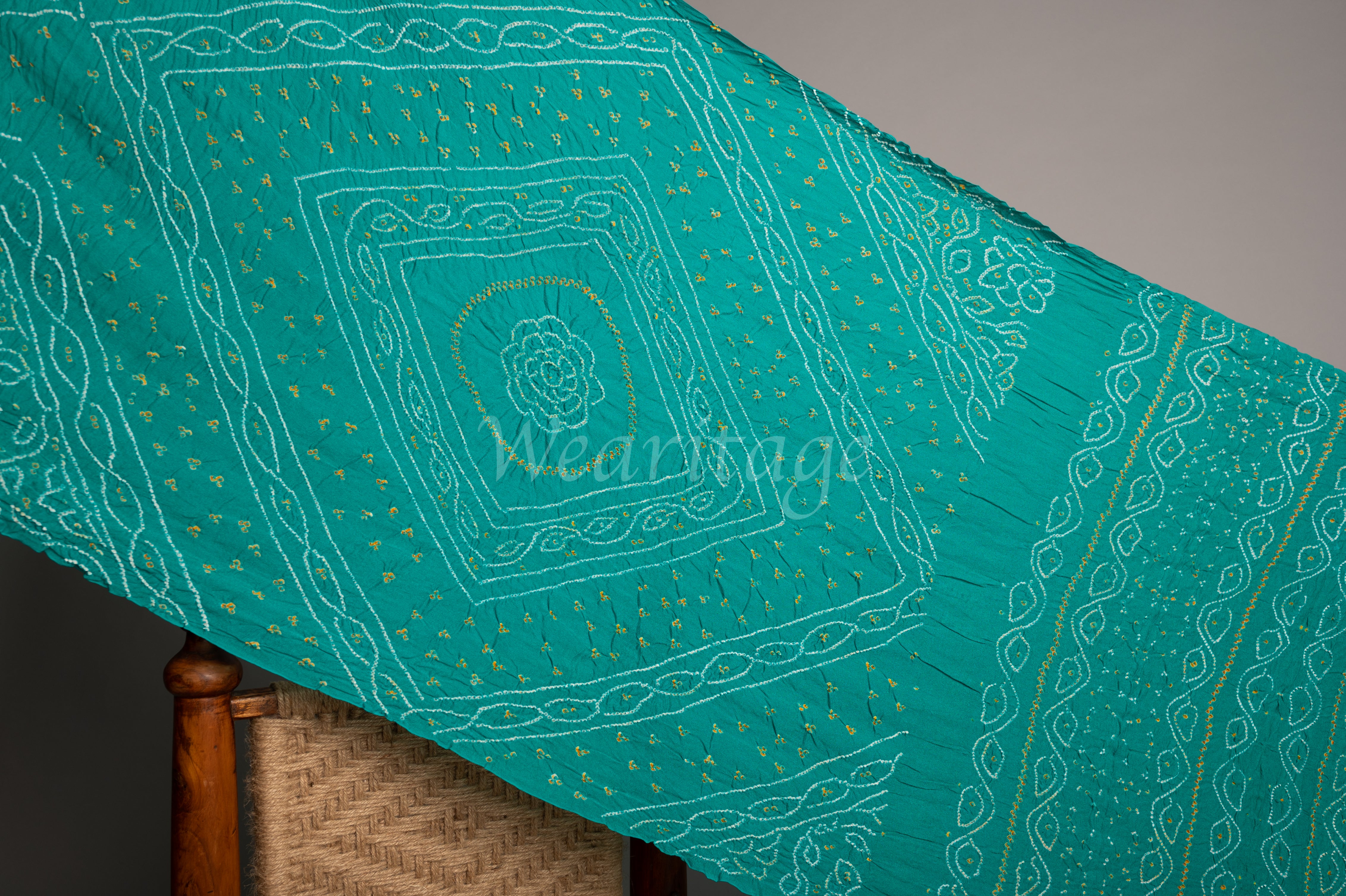 This pure georgette bandhej saree is everyone's favorite because it is very lightweight and easy to carry. The georgette sarees are known for their grace and easy-to-drape quality. These sarees have a translucent, crinkled surface that makes them popular amongst saree enthusiasts. Such sarees are breezy and convenient to wear for long hours.