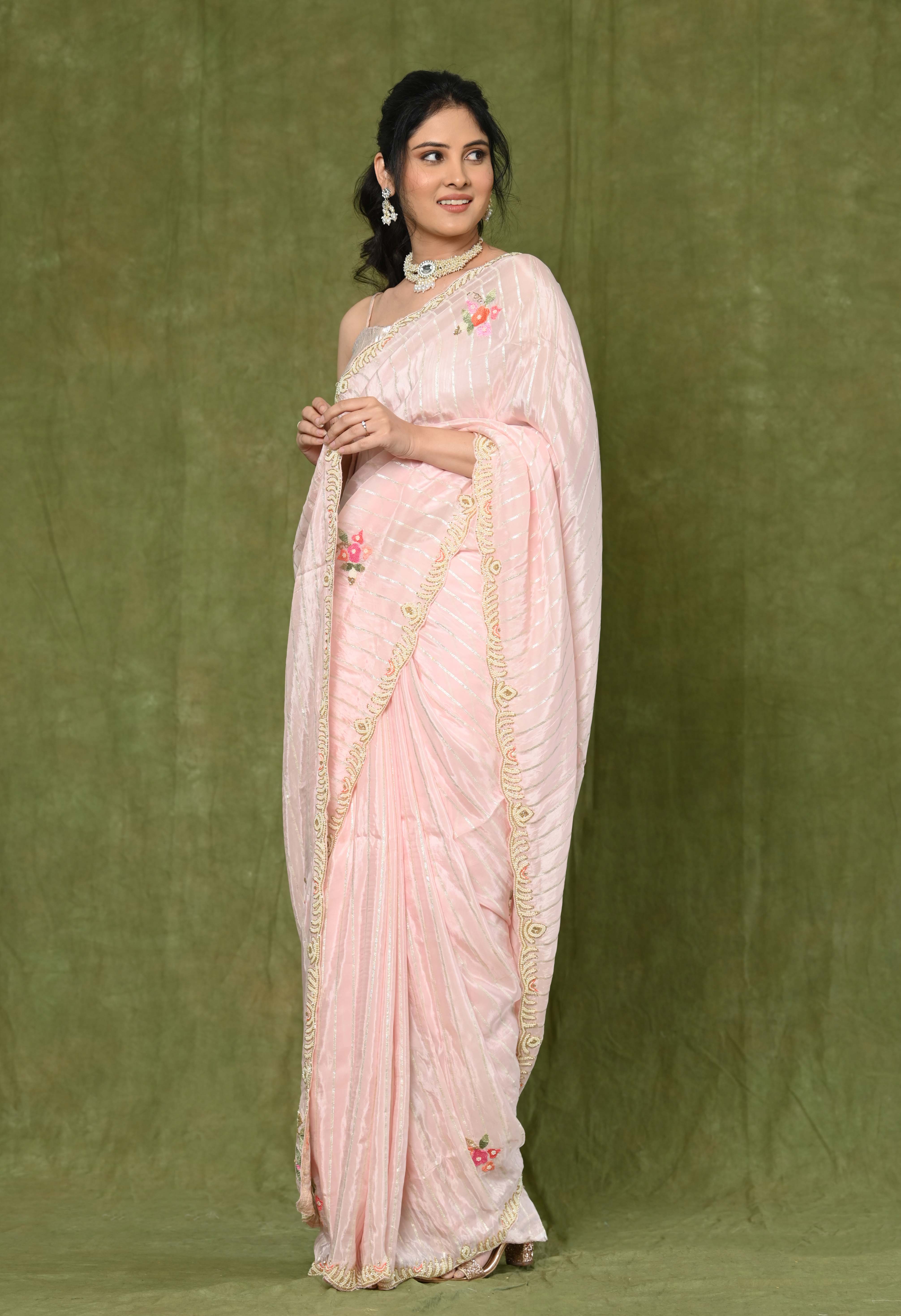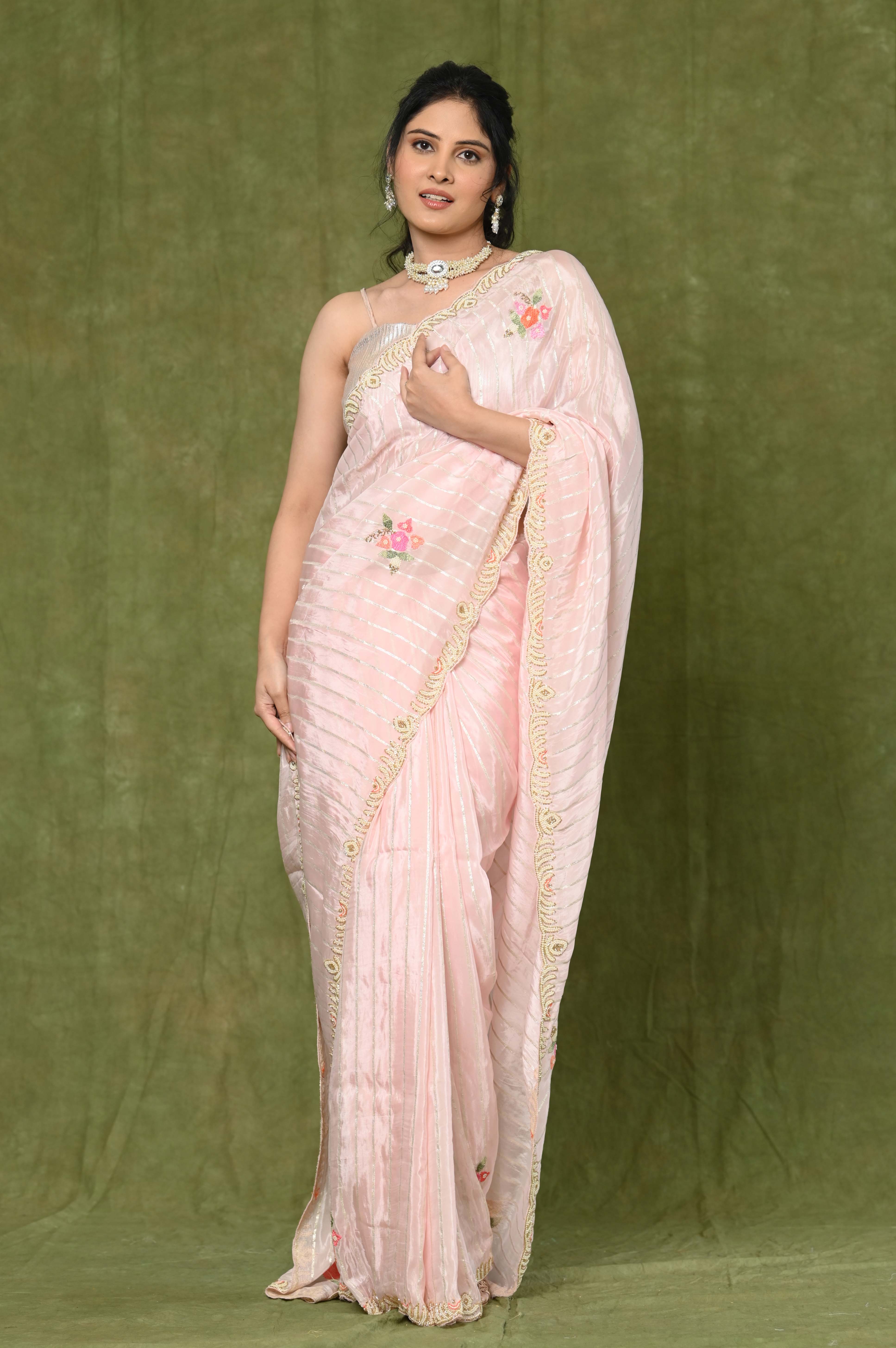 A Dola Silk embroidered saree is a luxurious and elegant choice for traditional Indian attire. Dola silk, also known as "Douppioni" silk, is a fine and textured silk fabric known for its natural irregularities and slight slubbing, which adds character and charm to the fabric. When combined with embroidery, it elevates the saree to a stunning and intricate work of art.