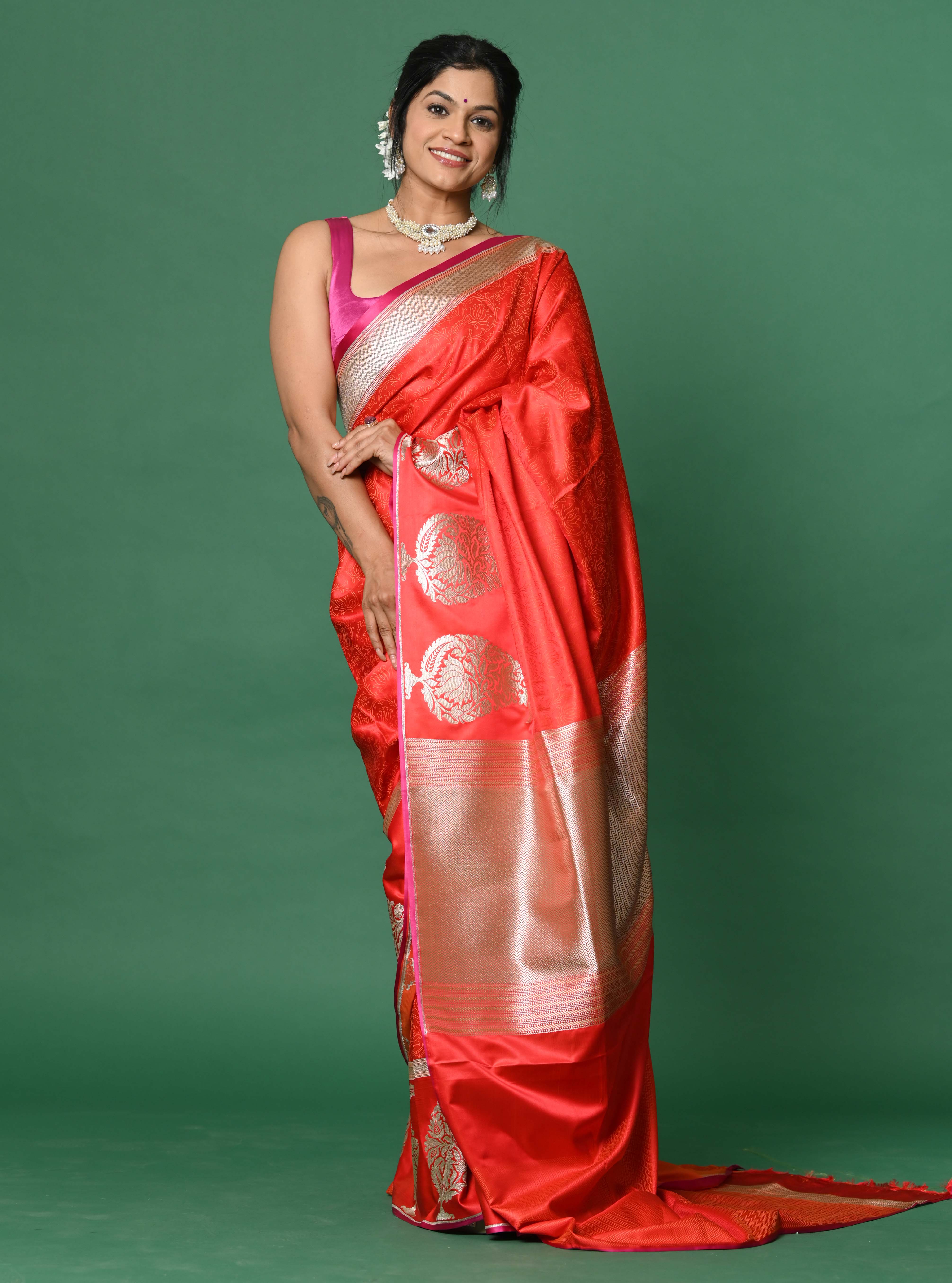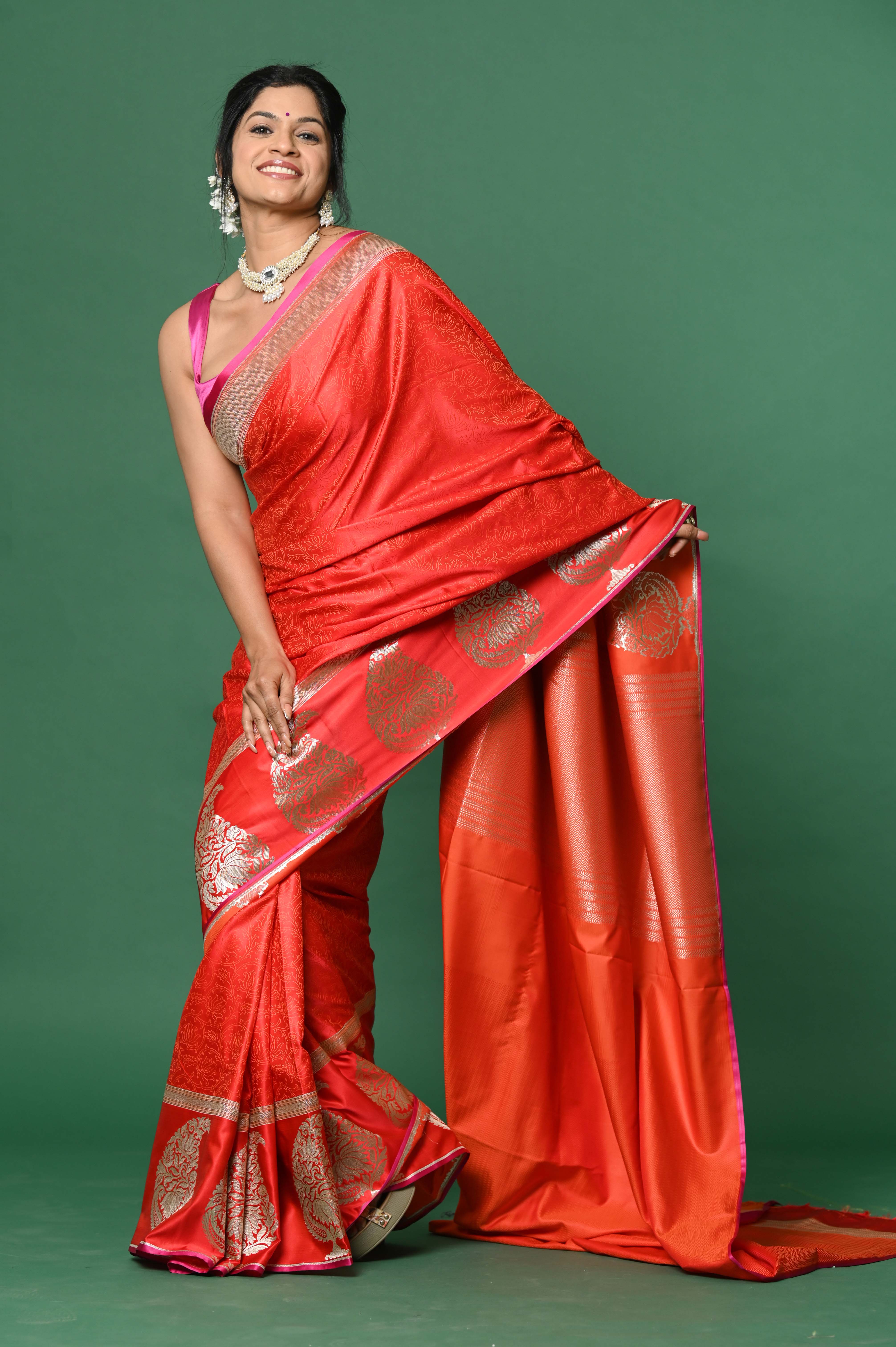 A Soft Silk Banarasi saree is a classic and elegant traditional Indian outfit known for its luxurious silk fabric and intricate Banarasi weaving.