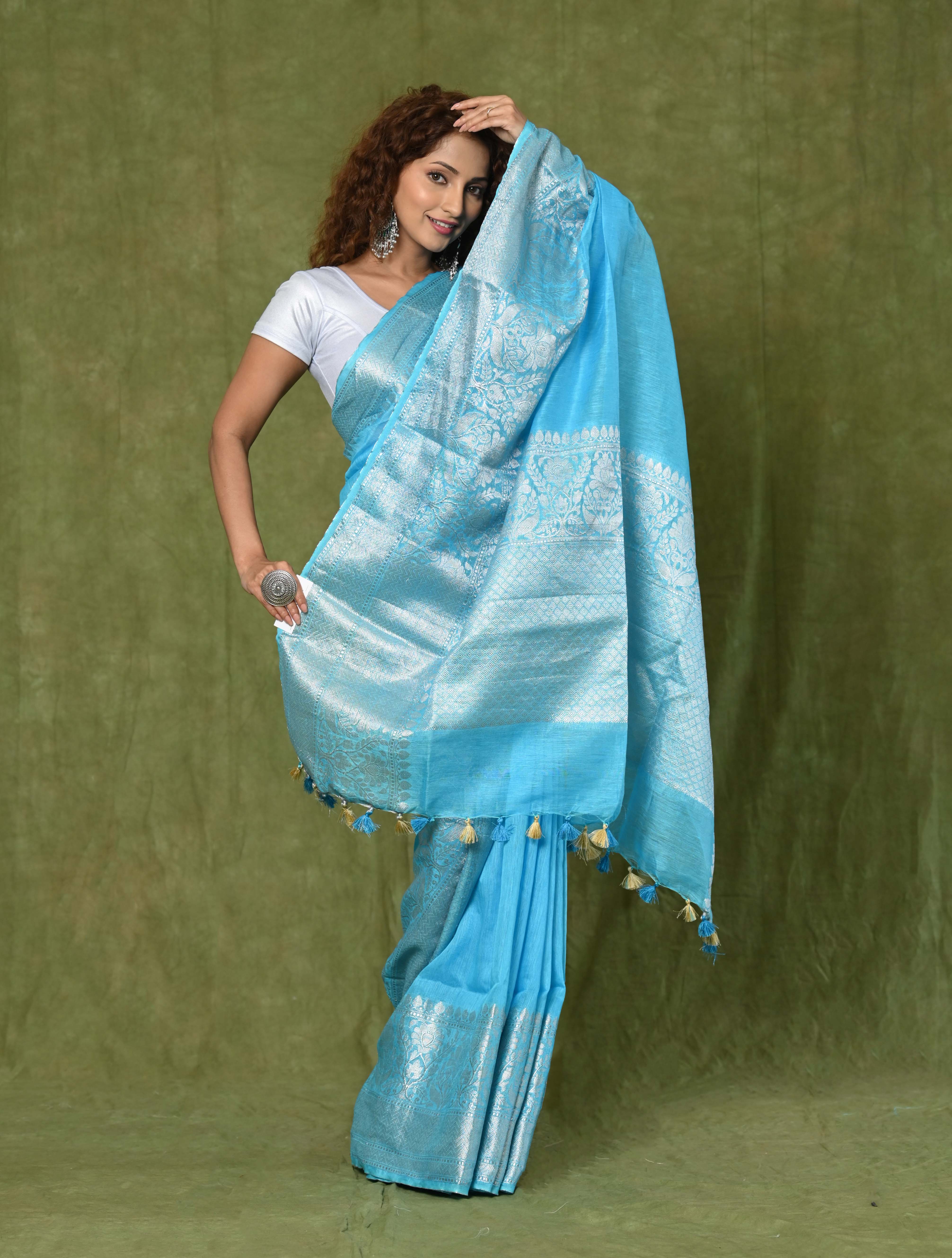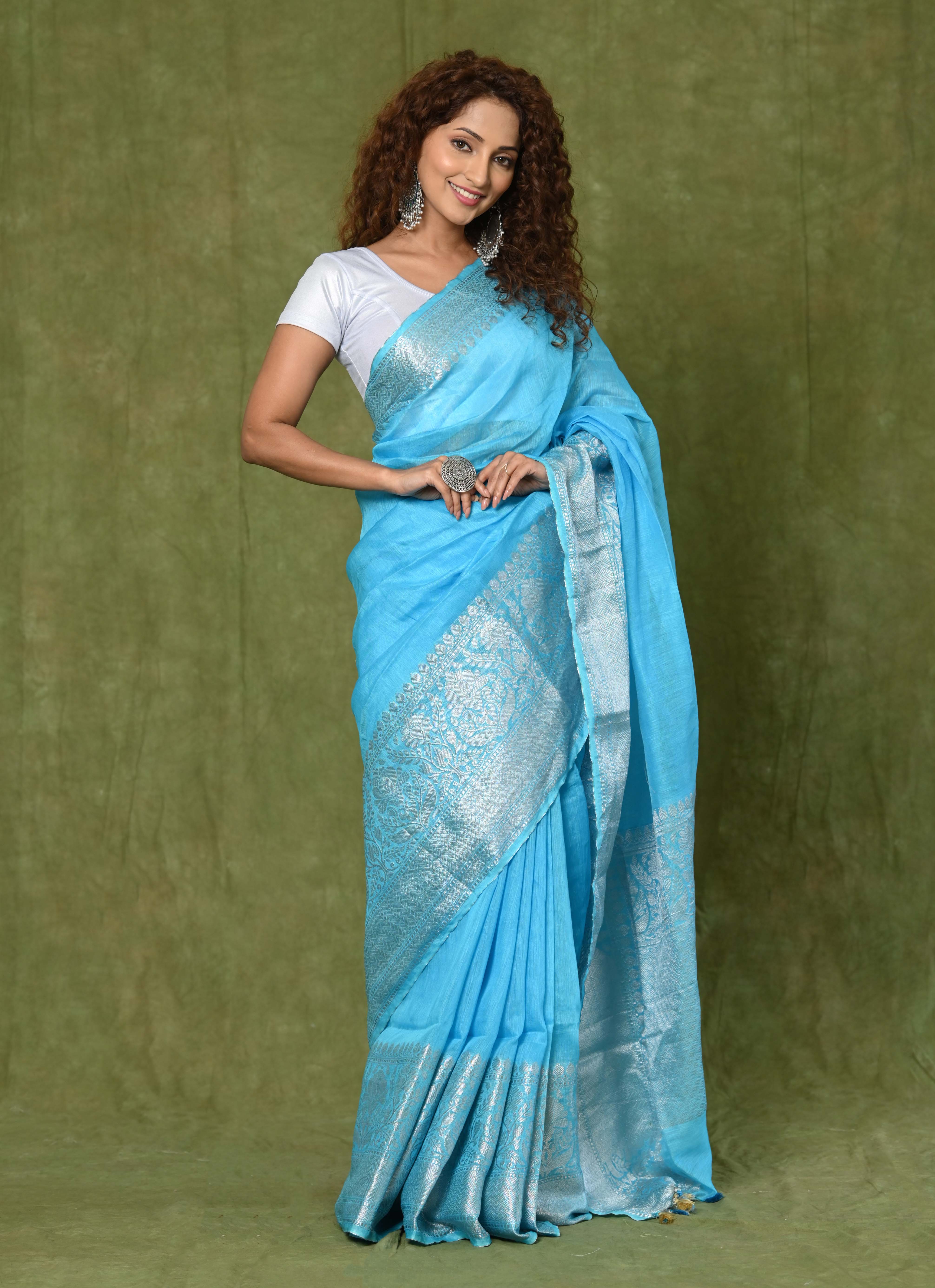 A Banarasi Linen saree combines the elegance of Banarasi silk with the comfort and breathability of linen, creating a beautiful and luxurious outfit.