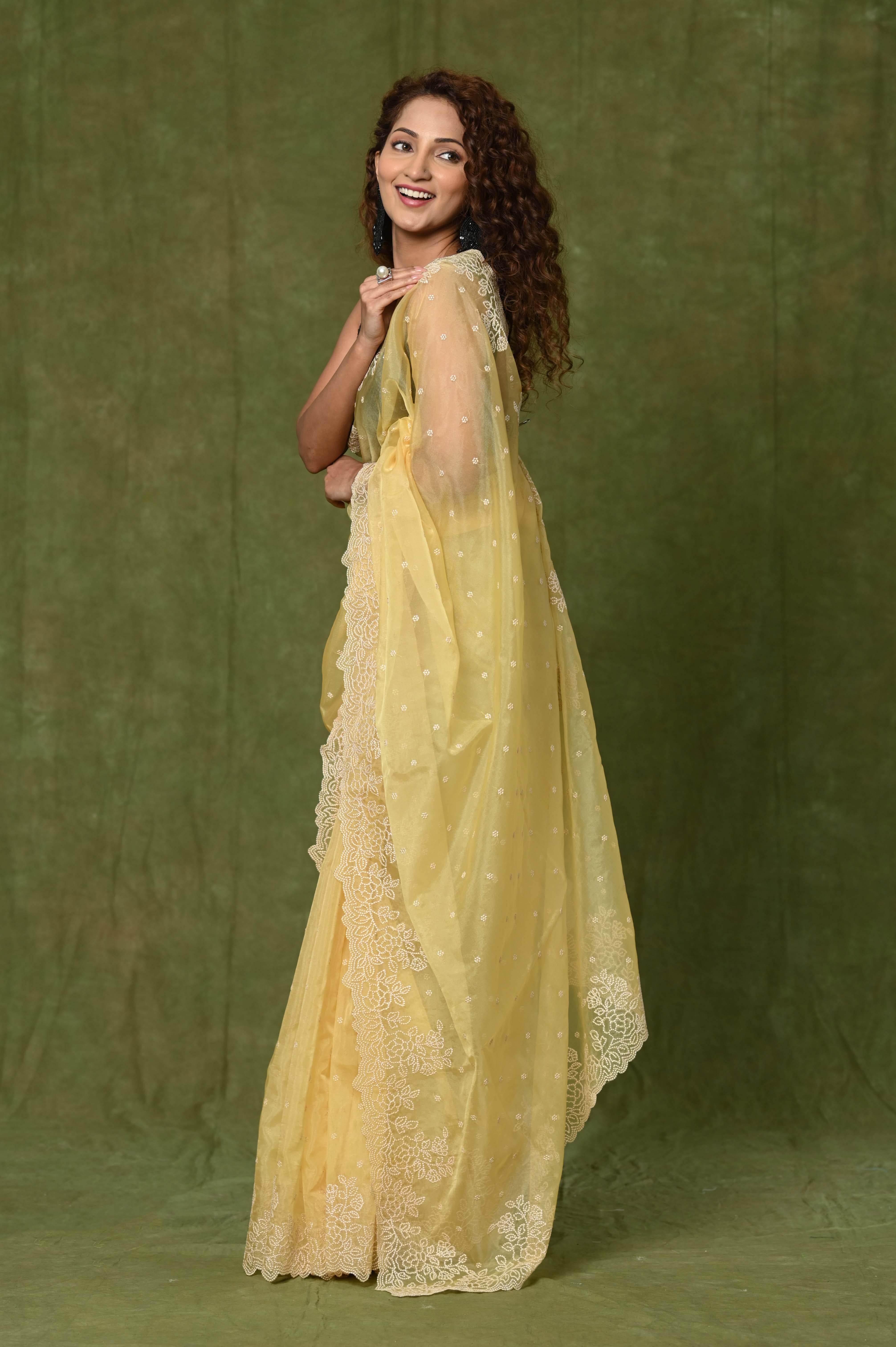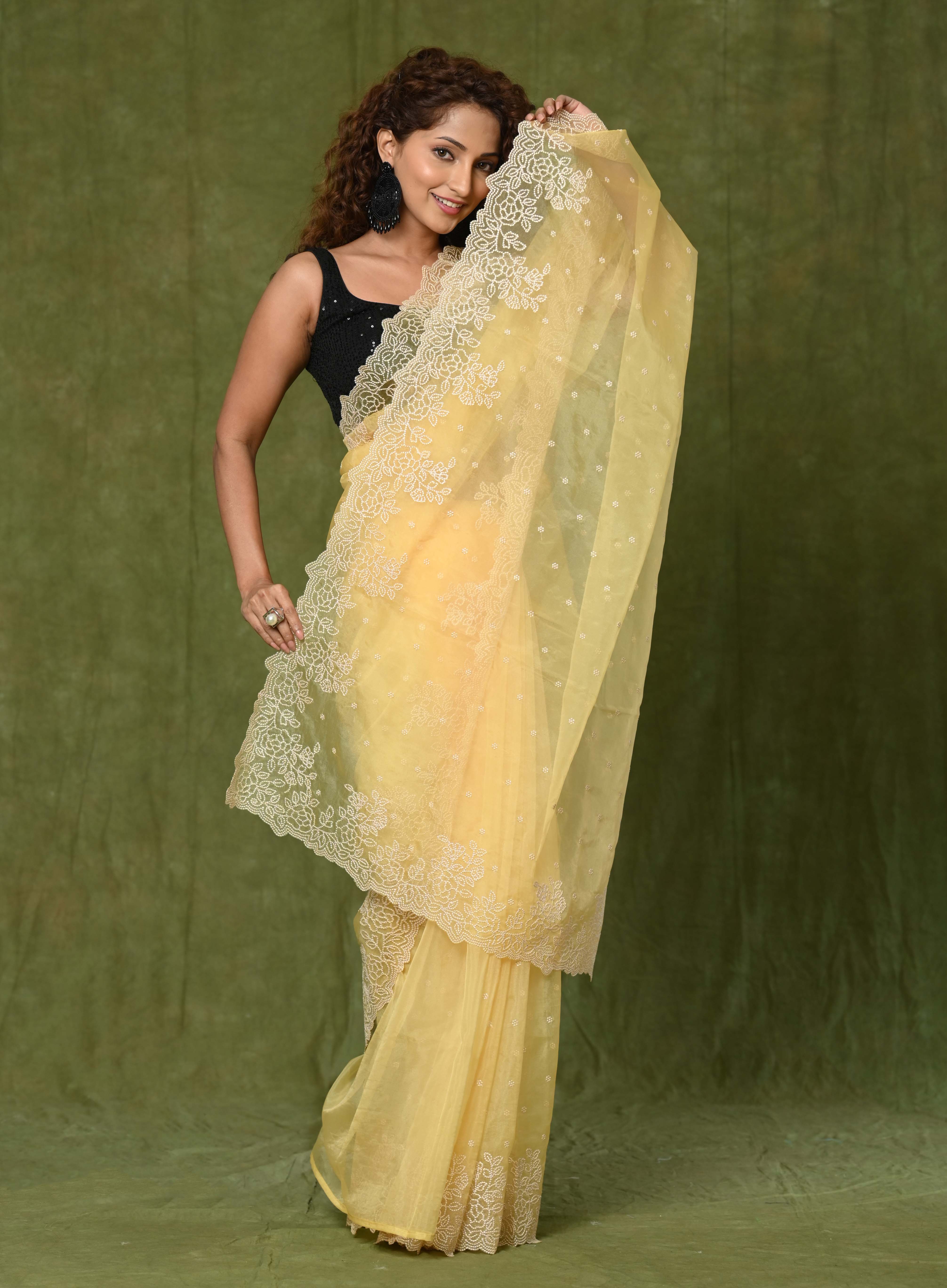 Organza is a lightweight, sheer fabric known for its fine texture and high sheen. Organza embroidered sarees are known for their timeless appeal and can make a stunning fashion statement at any formal or celebratory event.