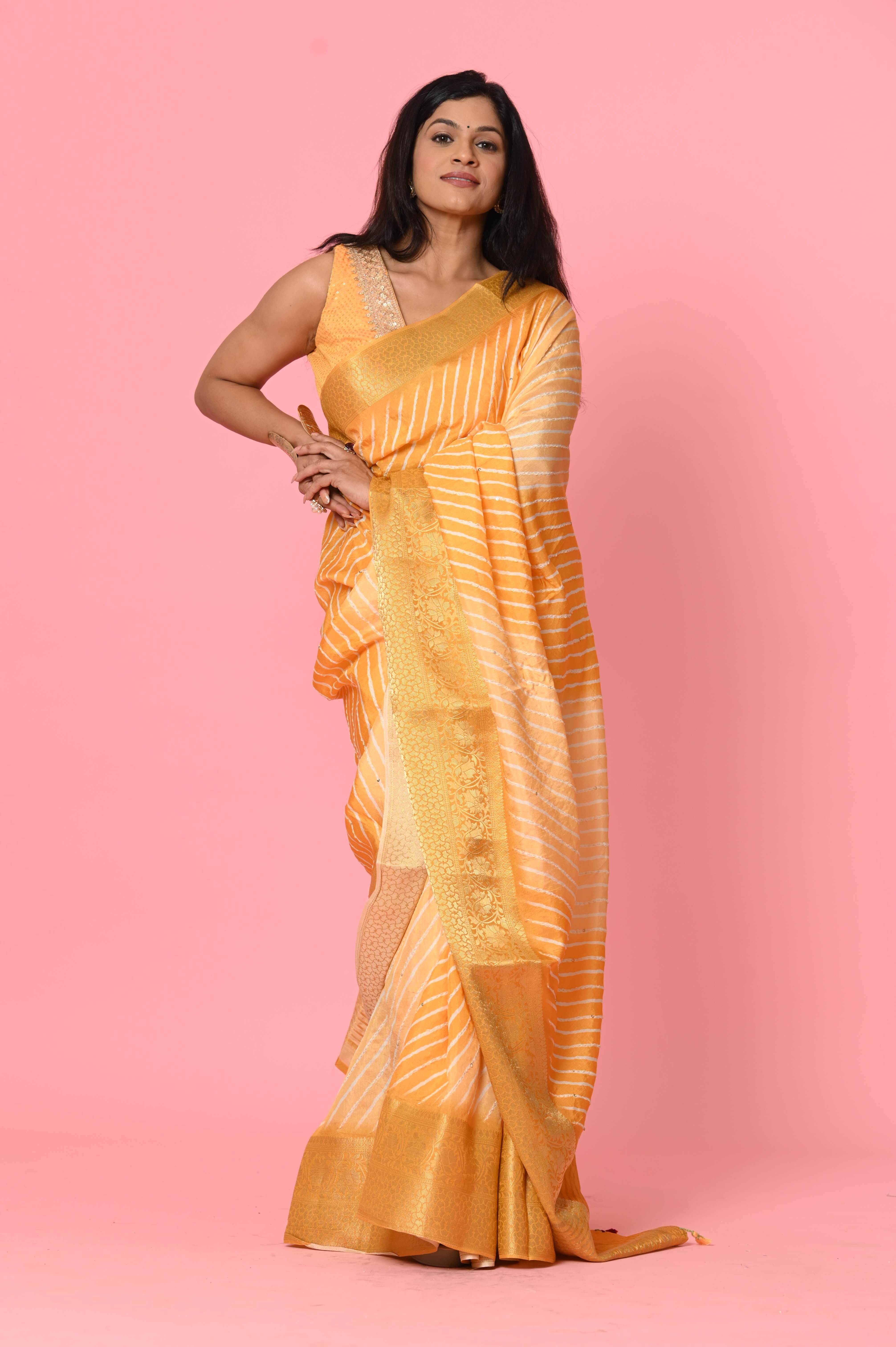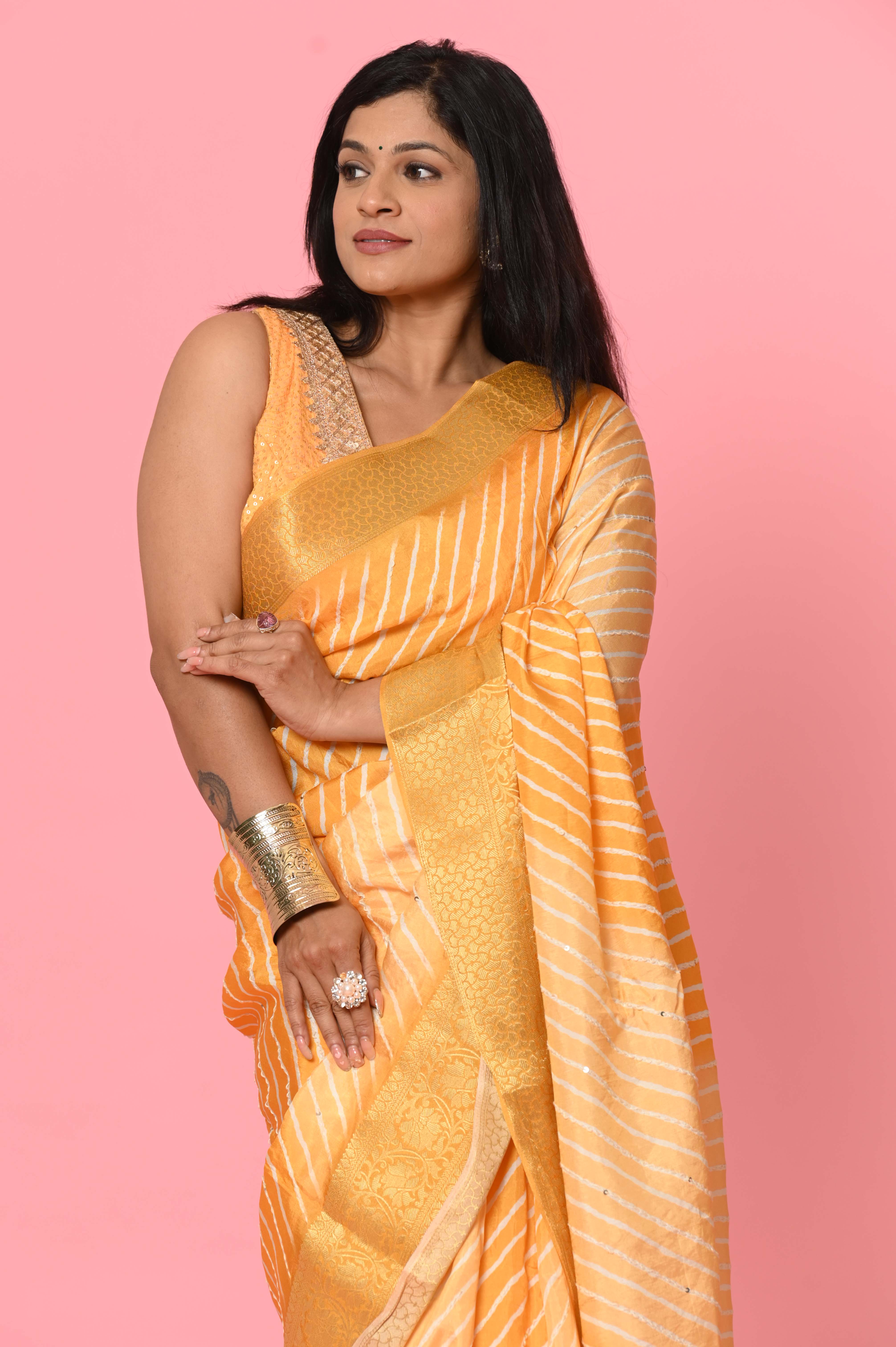 Yellow Moonga Silk Lehariya Designer Saree